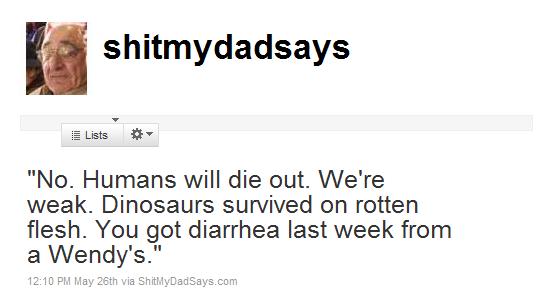 Now a sitcom starring William Shatner, S*#! My Dad Says was inspired by writer Justin Halpern’s father, when he found himself “newly dumped and apartment-less” and “spending a lot of time around the house with his father.” A Twitter page with 1.3 million followers and a book later, S*#! My Dad Says is taking not just the internet world by storm. Here are a few choice phrases from Samuel Halpern: