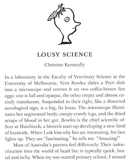 So I found out some interesting facts about head lice from The Monthly’s February 2011 edition.