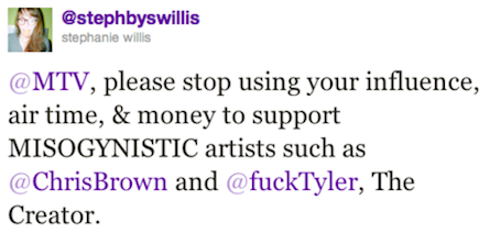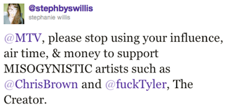 MTV, please stop supporting misogynistic artists such as Chris Brown and Tyler, the Creator. [Be Closer]