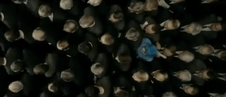 Not only was she the only woman in many of the scenes but, as you can see from the images above, she was also the only one dressed in blue in a sea of dull suits.