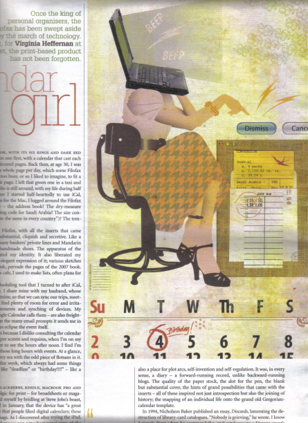 “… Those women’s magazines… are making me feel genuinely bad about my life achievement. Because I don’t yet have an ‘investment handbag’” [p. 205].