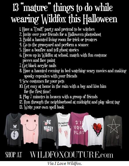 Shameless Wildfox plug: “13 ‘Mature’ Things to Do While Wearing Wildfox This Halloween”. I did just one of these things this Halloween. Can you guess which?