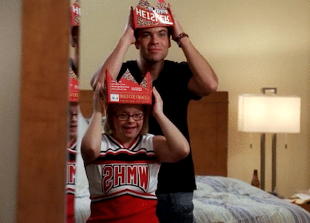 It is revealed that Becky sent Artie a sexy photo and he feels weird about it. Sue asks if he felt the same when Brittany, no doubt, sent him similar pictures of herself. Artie replies no, but those were different circumstances. So even Artie, a man with disabilities himself, thinks someone with Down’s can’t be sexy. Hypocritical, much?