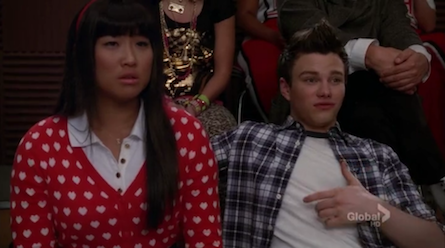 Wait a minute: wasn’t there an episode this time two years ago in which Finn was the one with the body hang-ups and Artie espoused words of wisdom for navigating the female gaze as a high school boy? While Finn might have grown up since then and Artie’s still in a wheelchair, it’s just another example of the lack of continuity and explanation in Glee.