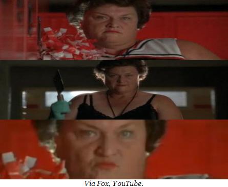 Finally, we can’t forget Coach Beiste. When she debuted on the show, her sexuality and gender was thrown up in the air, when she’s really just an unconventionally attractive, masculine straight woman who happens to coach a men’s football team. But of course attention is drawn to her 40-year-old virgin status every time there’s a virginity-themed episode. Because, you know, she’s old and funny-looking and has never been on a date! Riotous!