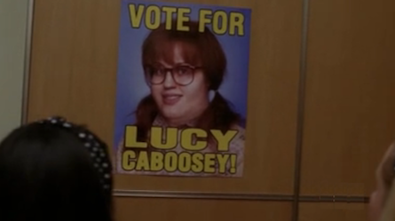 Lauren plasters posters of Quinn as Lucy all over the school, which inadvertently sees Quinn’s approval rating go up 40% because her student body realises she’s not just a vapid beautiful person, but someone with problems and a past, just like them.