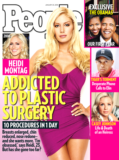 For example, a recently refurbished Heidi Montag admitted to undergoing 10 cosmetic surgical procedures in one day because she wasn’t happy with the way she looked. She obviously has deep-rooted body dysmorphic issues, however instead of helping and supporting her, the public has turned on her.