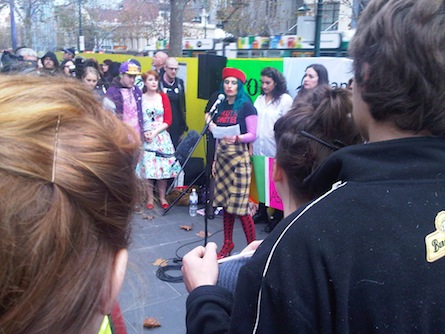 Speaking of, I was really proud to see the representation of sex workers at the event, and president of the Australian Sex Workers’ Association, the Scarlet Alliance (represent!), Elena Jeffreys (above) spoke about her sexual assault and that even though she was paid for sex, she was not consenting to assault. Her opinions on the SlutWalk were really interesting and I hope they receive as much publicity as the negative perceptions of the rally have in the media.