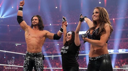Lita and Stratus were instrumental in changing the notion of what it means to be a women’s wrestler. Both wrestled in the first ever one-on-one women’s main event to close Raw in 2004 (not including Lita VS. Stephanie McMahon for the WWE Women’s Championship in 2000 in which, as Lita puts it, they had male “props” including The Rock as special guest referee and McMahon’s on-screen and real-life husband, Triple H, at ringside). Lita also wrestled in WWE’s first ever women’s cage match and was part of the highest rated Raw segment in the show’s then thirteen-year history in 2006. (Let it be known that this segment was marketed as a “live sex celebration” in which Lita was topless but her breasts concealed from view so it probably isn’t an exemplar of gender barriers being broken.)